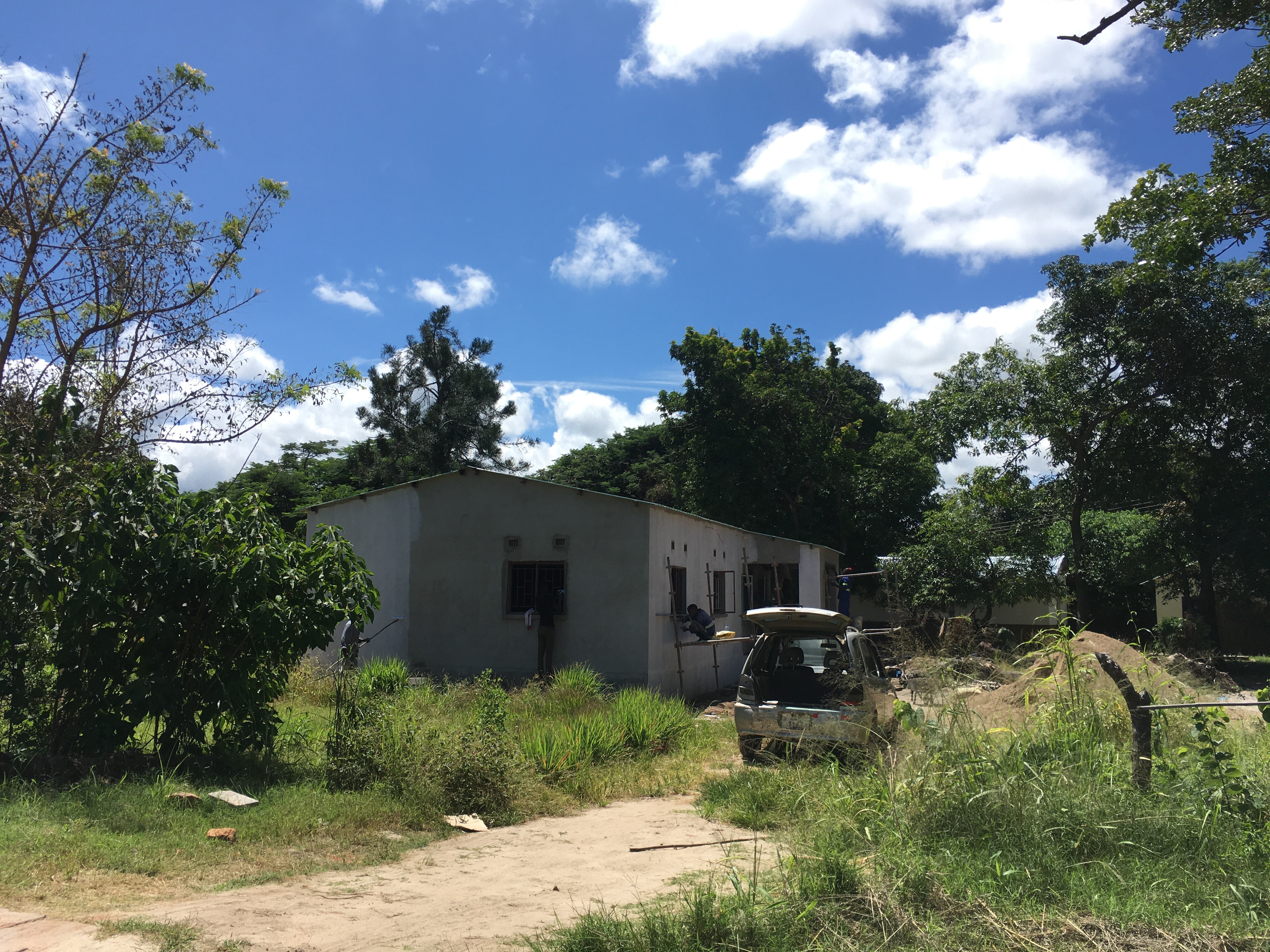 En dan is het zover, onze laatste etappe. Om eerlijk te zijn hebben we weinig hoop op een goede ontvangst. Zoals de afgelopen maanden gebruikelijk, is er niet op onze berichten gereageerd. Is er een woning voor ons als we aankomen? Naar wie moeten we vragen als we gearriveerd zijn? Via Joop, de Nederlandse tropenarts, weten we dat de directeur ‘on leave’ is en dat de andere chirurg en de hospital administrator op de hoogte zijn van onze komst, that’s all. We gaan er vanuit dat als we ons gezicht laten zien het wel goed komt. We rijden over de Great East road tussen de groene bomen en velden met zonnebloemen Als er twee berichten binnen komen: You are welcome & you will find us. En dan na 538 dagen en 68.738 kilometer zit het reizen er opeens op. We zijn in Katete en rijden het ziekenhuisterrein op. We worden welkom geheten door Fred, de ‘hospital administrator’. Ons toekomstige huis is een nieuwbouwhuis!